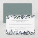 This modern botanical wedding response card features watercolor leaves in trendy shades of green, blue, and grey for a stylish look that is both elegant and rustic.