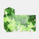 This wedding favour box invites you to enter a leafy summer world of nature. Maple leaves frame a sunny woodland forest scene with shades of yellow, white and green. Customise the text for your special occasion.