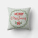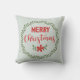 A leafy wreath and floral illustration with the text 'Merry Christmas'in calligraphy fonts. Christmas/Holiday Throw Pillow. Made in the U.S.A. from the highest quality cotton or polyester.This lovely Christmas design will enhance any home decor, office or dorm room. A great gift for yourself or someone special. Personalise your gift by adding your own name or initials. Choose your own font and colours to make it your own. Available in 16 or 20 inch square and 13" by 21" rectangular sizes. Insert included. (Also available as a patio or garden pillow, just select outdoor from the Fabric tab and choose the size you need).