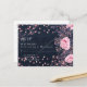 LeahG Denim Blue Rosegold Pink Floral Wedding Postcard