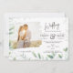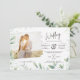 An elegant and modern wedding invitation that allows you to add a couples engagement photo. Features a leafy green overlay image. Perfect for greenery foliage themed weddings.. Typography fields both sides and a QR scanning code. ⭐This all-in-one wedding invitation includes text template fields on BOTH sides, allowing you to add your wedding ceremony, reception, RSVP, gift registry, and accommodation information without purchasing extra enclosures and stationery. This selection guarantees a high-quality budget alternative while both saving money and being ecologically responsible. Fewer sheets of paper equals less trash! You can use the TRANSFER tool to transfer this design to other goods or access Zazzle's FREE LIVE DESIGNER service via the options on your website for creative assistance. It's worth noting that you can include a QR scanning code with this invitation. If you don't need this, simply remove the image or replace it with a logo, graphic, monogram, or photo. Zazzle has many customisation features to help you be creative and design your own wedding stationery. Our wedding invitations are appropriate for all seasons, including summer, spring, autumn, fall, and winter. They are great for weddings held outside, inside, on the beach, in a barn, in the countryside, on a mountain, in a lake, in the forest, or in the woods. ⭐Enjoy your wedding planning adventure, save and follow our store, and pin to your Pinterest boards. ⭐