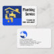 Overleaf, in a white cover, card details are over on the left. At the top is a blue faucet logo you can use. This is followed by your prestigious name, the contact details and a slogan caption which you can change.