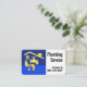 A blue layered cover features a gold faucet-pipe that is leaking under a rooftop building. To its right is a white layer that contains the business name and its contact details; Change the caption to the business name to suit your own service needs.