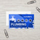 At the top of the card you have your prestigious name alongside four light blue plumbing icons motif. At the base of the card is the business name "PLUMBING" and a slogan caption option ; You can change both captions to suit your own needs.