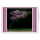 A small tree, blossoming pink, leans as if in the wind.