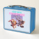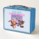 This is a standard metal lunchbox that appears to work just fine. We designed this box ourselves with an uploaded photo and custom text on the front and back. It looks absolutely beautiful except the front of the lunchbox is not centered like it shows in the photo. The print borders don't align with the inset flat part of the box where the preview photo online showed it perfectly centered in there. The back looks nice and centered though.