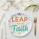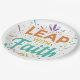 The "Leap with Faith" paper plate design features an inspiring and dynamic scene. At its centre, a graceful figure is depicted mid-leap, capturing a moment of bold, upward motion. The background is a serene, sky-blue gradient, symbolising the limitless possibilities and the freedom that comes with taking a leap of faith. Surrounding the central figure are subtle, delicate swirls and starburst patterns, adding a touch of magic and excitement to the design. The edges of the plate are bordered with a simple, elegant trim in a complementary colour, tying the whole design together. This design not only serves a practical purpose but also brings a sense of encouragement and positivity to any gathering.