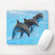 Mouse mat with a trio of lbottlenose dolphins leaping in formation