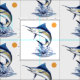 An image of beautiful leaping marlin is featured on this colourful fabric. It will inspire an endless variety of projects to remind one of happy Summer days spent on the beach or times cavorting in the islands.