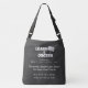 It's very roomy. The fabric is soft and flexible, and the strap is wide and adjustable to fit across the body. The printing is true to the photo.