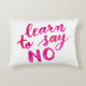 Learn to say no inspirational quote. Hand-written pink inspirational quote on accent pillows.