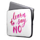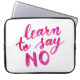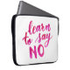 Learn to say no inspirational quote. Hand-written pink inspirational quote on laptop sleeves