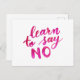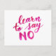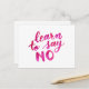Learn to say no inspirational quote. Hand-written pink inspirational quote on postcards.