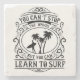 Learn to Surf, this design features a surfer in black and white with text saying "You Can't stop the waves, but you can learn to surf".