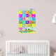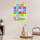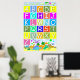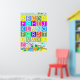 Learn your ABC With Dinosaurs Reading Letters Poster. Learning your ABC is fun with this cute cartoon dinosaurs ABC chart from letters A to Z with different colourful dinosaurs like Diploducus, T-Rex, Triceratops, Stegosaurus, flying Pteranodon and Parasaurolophus in a happy colourful pre-histic world with palm trees, mountains and a vulcano with colour stars poster print with customisable text "Learn your ABC with dinosaurs!". This great dinosaurs ABC alphabet poster is fully customisable, add your texts and images! A great letters learning chart for the big little dinosaur fans!