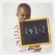 Learning arithmetic. 4-year-old boy holding a square sticker