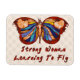 Celebrate the growth of your emerging power with this multi-coloured butterfly with the body of a woman in the centre and the words "Strong woman learning to fly."