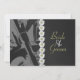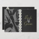 The front axle and wheel of a motorcycle in grayscale make up the left edge on the front of this wedding invitation perfect for biker couples. The right edge has the appearance of black leather. A single row of daisies separates the two halves. A row of the same flowers decorate the back of the invitation. All customisable text can easily be changed to suit your own needs.