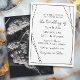 Simple modern black and white minimalist wedding invitations with geometric lines. The back is a graphic of leather and lace.