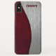 Modern dark red fake leather and smooth grey metal. Optional monogram