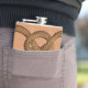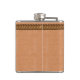 Western theme drinking flask done in graphics of a tan leather look, with a knotted rope, around the top. Personalise the brown one letter monogram for yourself or as a great gift idea.