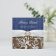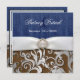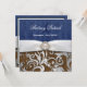 Leather & Denim Damask Western Wedding Invitations---match the RSVP cards and more found below on this page. Each invitation features s floral leaf damask print in silver gradient over a printed brown leather background. The front and back also feature a printed white band with a diamond embellishment. These wedding invitations are set to high quality basic card stock; however, you can change the stock to linen, felt (embossed), recycled, and several metallic shades if you would like under number 2 (choose your style, size & paper type) below the orange add to cart button. A list of the additional costs for a fancier card stock are displayed also under that option. Each invitation comes with a fitted white envelope.