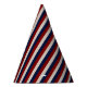 LEATHER LOOK PATRIOTIC STRIPES-PAPER PARTY HATS-Red, white and blue vertical stripes created with a digital leather texture. The stripes are an allover background print suitable for special holidays and events throughout the year. Paper hats are six (6) inches high. A minimum order of a dozen is required. Coordinating party supplies is available.