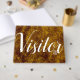 A faux aged brown and gold dappled leather style background has a stylish bold and decorative white font with the words "Visitor log" +
