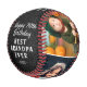 Black Leather Print Happy Birthday Grandpa Grandchildren 3 Photo Collage Baseball. Black leather print background. Make a special baseball ball for the best grandpa ever. Add 3 photos to the template and customise the text with your names and age. Lovely keepsake birthday gift for grandfather.