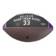 Black Leather Print Purple Player Name Number Team Photo Football. The text is trendy white typography on a black leather printed background with purple stripes. Personalise it with your photo, player`s name, number, team name and year. You can change any text on the football or erase it. A perfect gift for a football player, teammate or coach. Great keepsake to remember your favourite sport.