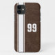 Simple and classic Pig Skin Brown Leather & White Striped Sports Team Jersey Numbered iPhone Case. Great for dads, brothers, grads and friends. Customise with a name and/or jersey number.