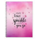 Always Leave A Little Sparkle Wherever You Go - typography notebook with pink stars on a watercolor pink pastel background. You can personalise with a name by clicking 'edt design' and then 'text'. Perfect to celebrate a birthday or as a graduation gift.