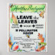 This fun and friendly Pollinator Friendly education poster helps educate adults and children about creating a healthy yard for pollinators, and how dead leaves play an essential part. Small poster features appealing illustrations of birds and animals with simple info-graphics to create high impact.