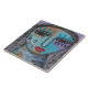 My funky abstract acrylic painting on OSB board of a woman is printed on ceramic tile