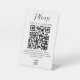 Leave us a review Simple QR code Pedestal Sign. Simple Minimalist professional pedestal sign on white and black. The Leave us a review template has space for basic information like the logo, QR Code, and additional text to promote your business. With a single scan, your customers can leave a review the perfect way to promote your business and enhance your business. Click on "personalise this template" for product customisation.
