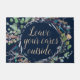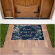 This beautiful navy doormat features a circular wreath of richly coloured foliage and herbs. A gorgeous script in the centre reads "Leave Your Cares Outside".