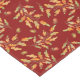 Stylish tablecloth features watercolor illustrations of autumn coloured leaves and acorns on dark red background
