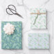 Leaves and Flowers Blue Green Wrapping Paper Sheet