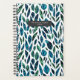 Watercolor inspired blue and green leaves pattern. Personalise name inside grey rectangle at front.