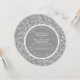 White leaves pattern on grey kraft paper rustic round wedding invitation. The focus of this lovely wedding invite is a floral pattern made of leaves in white and a frame with scalloped white outline that holds your wording on grey kraft style paper.