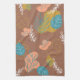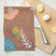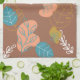 Leaves Shapes Drawn year round Boho Scandi Dish kitchen towel - A light handed design of leaf outlines and abstract colour blocks and a few tropical leaves create a light and happy feel. There are several towels with this design with different background colours. You can of course change the background colour as well. This design uses a brown background complementary to the colours in the design. This design is on a hard working kitchen dish towel that will serve you or your gift recipient for many years to come.