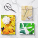 Wrap your gifts in the beauty of leaves, the theme for this set of three. There are bright yellow and burgundy for one sheet; tropical green leaves with bold shapes, and gold and silver leaves -- either will allow you to present your gift with quiet pride.
