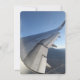 The wing of a large jet plane with the city below. Leaving on a Jet Plane is the title I chose, but it could be coming or going!