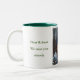 This is currently set up with green writing on a green two tone mug - white on the outside of the mug and green on the inside, with the writing on the leaving gift in a matching green. If you choose a different two tone colour you will need to change the font colour/colour of the writing. You can also choose a different size or style of mug. This is a unique and thoughtful gift at a time when someone is leaving or retiring. And it means that your work colleague will remember you too!