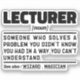 Funny Lecturer Sayings "Lecturer Someone Who Solves A Problem You Didn't Know You Had In A Way You Can't Understand". Grab this Funny Lecturer design as a funny gifts for an awesome mum, dad or friend.