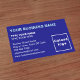 Left aligned style blue business card for your customers or clients to easily find your business address and contact information. Customise it by uploading your business logo, typing your business name, your name, your title, address, phone number, e-mail and website or social media page. Please check the appearance of the front and back sides after uploading logo and typing texts. If the appearance is pleasing to you, you can place your order now. If you need to resize or reposition the logo and texts, please adjust in the design tool. You can also change the background colour, font colour and font style in the design tool.