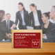 Left aligned style red business card for your customers or clients to easily find your business address and contact information. Customise it by uploading your business logo, typing your business name, your name, your title, address, phone number, e-mail and website or social media page. Please check the appearance of the front and back sides after uploading logo and typing texts. If the appearance is pleasing to you, you can place your order now. If you need to resize or reposition the logo and texts, please adjust in the design tool. You can also change the background colour, font colour and font style in the design tool.