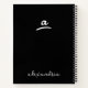 Keep your notes organised in style with this left-handed personalised spiral notebook. The notebook features a unique modern monogram and the name below in the lower thirds in complementary script, all in white on a black background. A sleek and stylish design, This notebook is perfect for personal use or as a gift for someone special. The spiral is on the right for left-handed convenience.