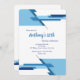 A trendy, abstract invitation with horizontal tabs in shades of blue against a crisp, white background. (<a href='https://www.freepik.com/free-vector/modern-abstract-blue-technology-background_1695874.htm'>Designed by Freepik</a>). <br/><br/>The card is easy to customise with your wording, font, font colour and choice of six paper types.<br/><br/>Not exactly what you're looking for? All our products can be custom designed to meet your needs at no extra charge.<br/><br/>Simply contact us at askcottonlamb@gmail.com<br/><br/>Coordinating products available: