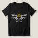 This stylish raglan shirt features the iconic Hylian Crest from The Legend of Zelda series, printed in a detailed white and gold design on a black and white baseball-style tee. The Triforce symbol, a legendary emblem of power, wisdom, and courage, sits at the centre of the crest, making it a perfect choice for Zelda fans and gamers alike. The comfortable fabric and classic raglan sleeves make this a great addition to any casual or geeky wardrobe.
